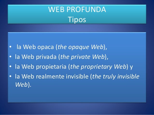 -Web privada consiste en las páginas Web que podrían estar indizadas en los buscadores pero son excluidas deliberadamente por alguno de estos motivos: